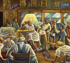 The black barber shop has long served as a location for open conversation about any and every topic. Before Eddie Murphy and Arsenio Hall donned white jackets in Coming to America, the locale has served as “a sanctuary for black men“.