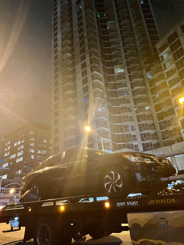 But I parked here right afterwards and he got out and returned to the scene, but I knew they were gone. My rear lights looked as the same intersection, the one where I escaped death just moments ago had returned to business as usual with cars driving over the parts of me I couldn’t keep with me. I could hear them breaking into smaller and smaller pieces as countless cars continue to drive by and drive over and ignore what just happened.